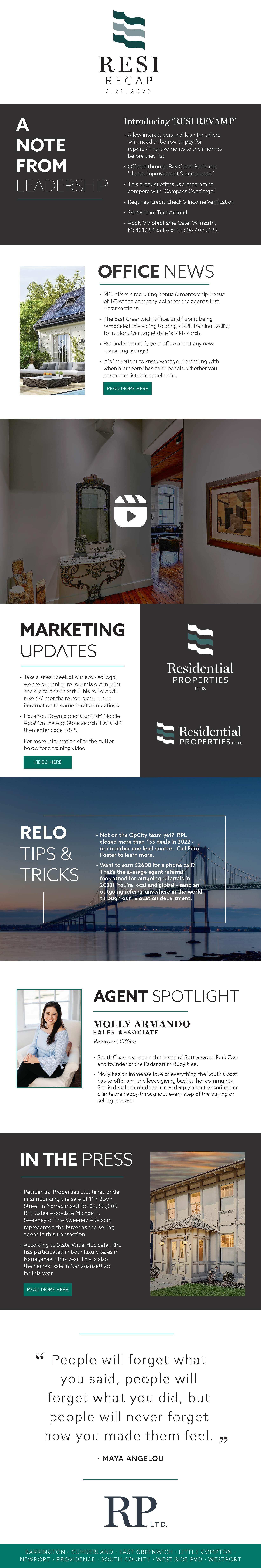 At Residential Properties LTD., I successfully implemented updated brand standards for marketing materials for 200+ agents across nine offices across Rhode Island.